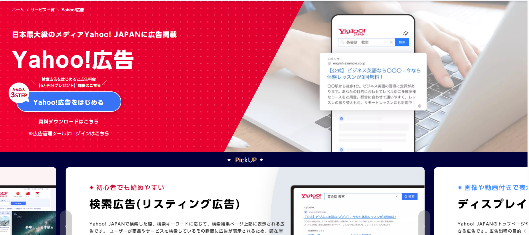 ・検索広告:主にテキスト広告がメインだが、画像の利用も可能